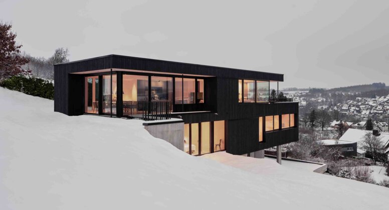 Sustainability was a conceptual basis and not just an additional aspiration. Concrete and wood enter into a constructive dialogue. The concrete base takes on permanent ground-contact and load-bearing tasks, while the lighter timber storeys enable efficient prefabrication, flexibility and a cosy indoor climate. A heat pump, panel heating and controlled ventilation complete the concept. “For us, sustainability doesn’t mean meeting standards in the short term. Rather, it means focusing on durability and material compatibility,” summarises Schönauer. “We wanted to create a house that is built with integrity – and that will of course still function in 30 years’ time.”