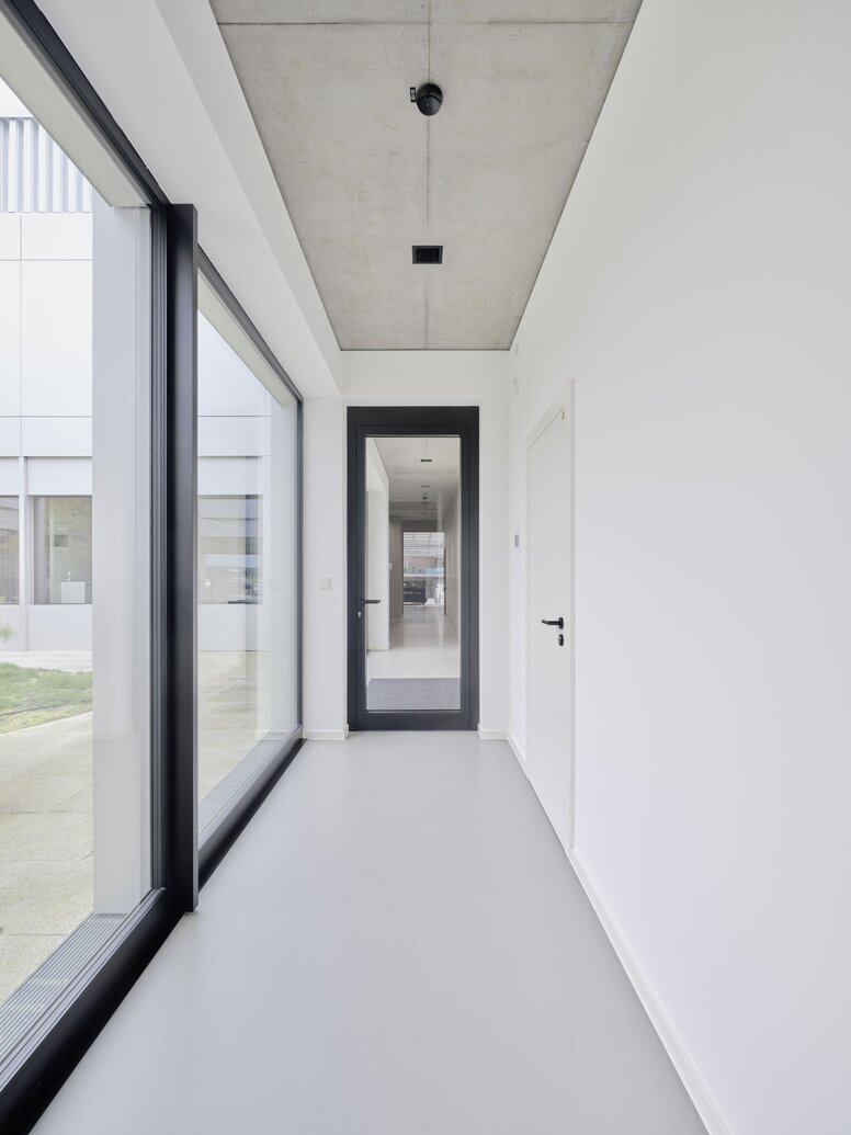 The architects and clients also paid particular attention to a highly efficient thermal building envelope and energy-saving building technology. For example, the building makes clever use of existing heat, exceeding the requirements for a KfW 40 efficiency house. Peak shaving - the buffering of electricity peaks using photovoltaics and electricity storage - allows a significant proportion of the company's own energy requirements to be recovered and used directly for the production and administration areas.