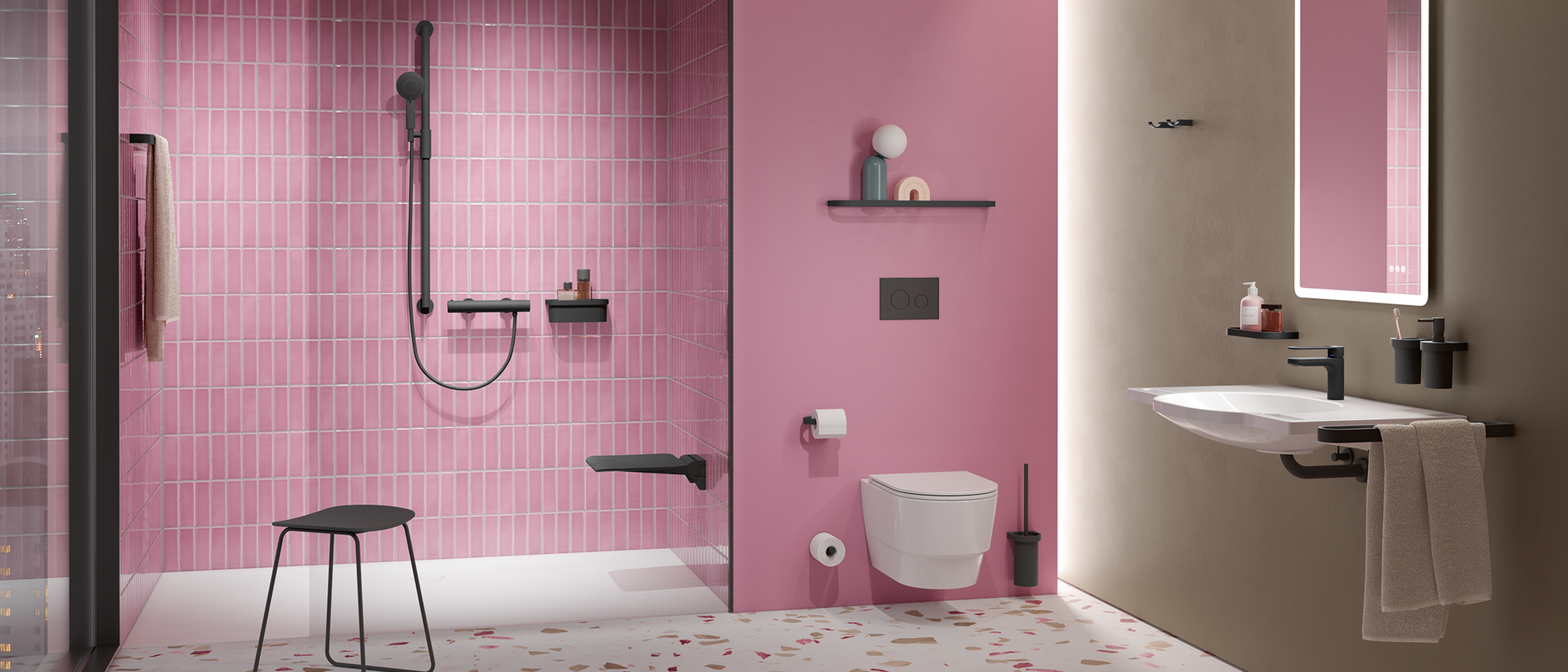 Les douches de plain-pied sont populaires, car elles sont attractives sur le plan esthétique et simple d'accès pour tous les utilisateurs et utilisatrices. Elles permettent aux personnes en fauteuil roulant de prendre leur douche en toute autonomie. Mais une douche de plain-pied ne suffit pas à elle seule. Sièges de douche, barres de maintien et d'autres produits contribuent de manière déterminante à l’accessibilité. HEWI propose de nombreux produits adaptés aux besoins individuels des utilisateurs et utilisatrices et qui rendent confortable la toilette dans la douche.
