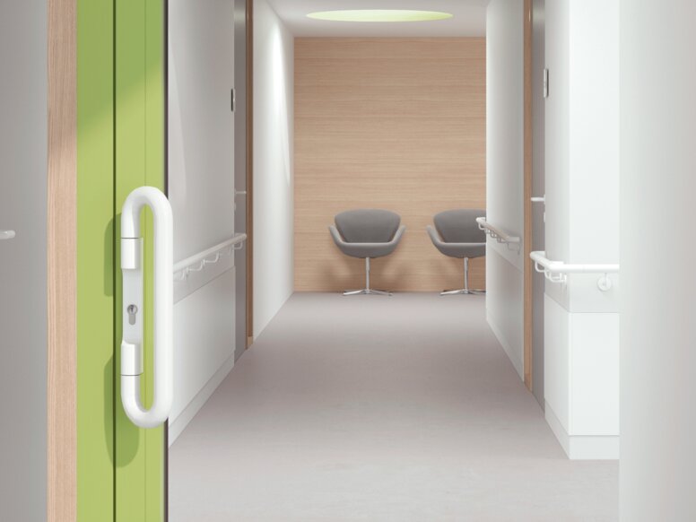 Conformément à la norme EN 179, les poignées de porte HEWI sont idéales pour les issues de secours dans des zones où aucune situation de panique n’est attendue et où les utilisateurs connaissent les voies d’évacuation. Elles offrent l’avantage de pouvoir être ouvertes sans effort d’une seule main, en particulier lorsque les portes sont lourdes.